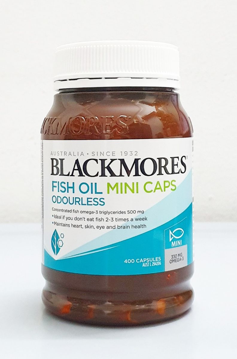 Viên Dầu cá Fish Oil Mini Caps ODOURLESS Omega-3 500 mg chai 400 viên hãng Blackmores của Úc